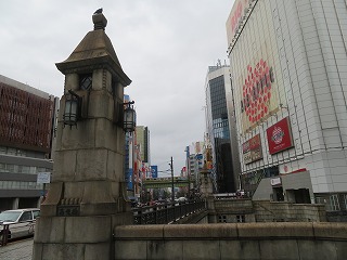 駅を西側に出て、国道17号となっている中央通りを進みます。程なくして、モダンな石柱の親柱が目を引く万世橋に到達します。明治期の地勢図を見ると、現在の万世橋のある場所には昌平橋の名の橋が架けられていたようです。そしてその地図では現在の昌平橋の架かる位置に「万世橋」の名が見えています。旧中山道は元来、この現在の昌平橋のあるあたりで神田川を越えていたようで、中央通りが現在のルートに変わるにあたり、万世橋の名も現在の橋の名へと移り変わったものと考えられます。万世橋駅の西側には、かつての国鉄万世橋駅の煉瓦の以降が残されていて、2012年7月に商業施設「mAAch ecute(マーチエキュート) 神田万世橋」として供用されています。 現代都市の中に沈み込むように流れる神田川を渡り、中央線の高架下をくぐり進んでいきます。須田町の交差点を越えてさらに歩きますと、JR山手線・京浜東北線の高架が見えてきて、JR神田駅前界隈へと誘われます。格子状に形成される町の区画を斜めに横切る鐵道の高架下をくぐりますと、日本橋エリアへと入っていきます。神田明神を中心に存立する神田エリアは、江戸城を中心とする麹町地区とともに現在の千代田区となり、日本橋は南の京橋地区とともに現在は中央区となっています。日本橋は伝統的な商業地域としての歴史も活かしながら、近年は大規模な再開発も行われていて、商業施設なども目立つようになっています。日本銀行のある一角を一瞥しながら、首都高速道路が宙空を通過する日本橋川沿いへ。関東大震災後の復興都市計画の中で完成した道路橋の常盤橋の北には、歩行者専用の石橋であるもうひとつの常盤橋(1877(明治10)年完成)があります。この明治の石橋は東日本大震災で被災しましたが、2021(令和3)年に修復が完了、供用されています。橋の西側には、奥州道中へと続く主要な道筋にあった常盤橋門の遺構も残ります。