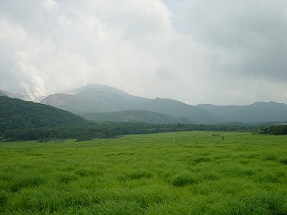 #147 久住山北麓、飯田高原の風景(大分県九重町) (2023年8月4日執筆) 2001年8月5日、このページでもいくつか写真を掲出している、北部九州の彷徨の中の一枚です。阿蘇を訪問後、「やまなみハイウェイ」と呼ばれる快適なドライブウェイを進む中で撮影したものと思われます。九州の中央部は数多くの火山が活動し、複合的な高原があって、夏は穏やかな山間の涼を感じることのできる場所となっているようでした。