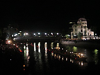 #515 広島・元安川の灯籠流しの風景(広島市中区) (2024年8月6日執筆) 2005年8月6日、被爆から60年を迎えた広島市・元安川の灯籠流しの風景です。遠景には原爆ドームもとらえています。この日の広島訪問から19年が過ぎ、被爆から79年となりますが、世界では依然として戦禍が絶えず、平和を希求する広島への注目も大きくなっていると聞きます。本年も、ささやかながら、世界の安寧を思い、一句を詠ませていただきました。