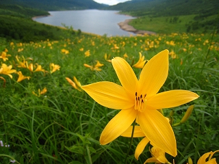 ![]() 2009年7月19日、ノゾリキスゲが満開を迎えた、六合村(くにむら)の野反湖へ出かけてきました。 曇天の下ではありましたが、湖に向かって咲きそろう花々はたいへんたおやかな高原の風景を作り出していました。 |
