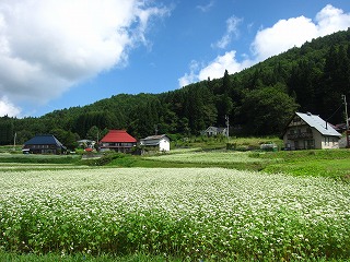 ![]() 夏まきのそばが白い花のじゅうたんをつくりあげていた長野県大町市(旧美麻村)を訪れました。見渡す限りのそば畑は爽快の一言に尽きます。 日差しはまだ暑い盛りでしたが、ススキや野菊の花なども見られまして、秋色に徐々に染まりつつあるようにも感じられましたね。 |