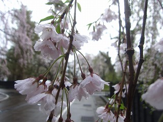 国道341号沿いにある武家屋敷入口交差点近くの駐車場に車を止めて、路面が濡れる武家屋敷通りを歩きます。深い杉木立の中に埋もれるようにシダレザクラが枝を揺らす風景は、角館の春を穏やかに彩ります。「角館のシダレザクラ」として国の天然記念物の指定を受けるシダレザクラは162本を数えます。それは秋田の久保田藩領の一拠点となった角館に、所預かりとして1656(明暦2)年に入った佐竹義隣(よしちか)やその子義明の時代に、京都から持ち込まれたものが受け継がれてきたものと伝わります。薬医門や屋敷、土蔵などが昔ながらの佇まいを見せる武家地に、満開から葉桜へと徐々に移り変わるシダレザクラがしなやかに重なって、えも言われぬ晩春の情景を現出させていました。花や若葉が雨に濡れるようすも、涼やかな朝の空気にしっとりと寄り添います。艶やかな絹糸のようなシダレザクラが朝の静かな時間を可憐に彩っていました。 武家屋敷が建ち並ぶかつての武家地は「内町(うちまち)」と呼ばれます。内町の南には町人地である「外町(とまち)」へとつながり、両エリアの間には広幅員の道路があって火除地とされました。外町は市役所支庁舎のほか多くの公共施設に混じって昔ながらの土蔵や町屋が立ち並び、藩政期から現代に至るまで、角館の中心市街地として機能してきた様子がうかがえます。郵便局前には歩道前に雁木状の屋根が架けられたちょっとしたポケットパークがあって、バス停のほか朝市などのイベントが行われる場所であるようでした。その雁木の前を通り最初の交差点を南へ。立町商店会と掲げられた町並みを進みます。この通りの一筋東側には田町武家屋敷通りがあって、その中心的な存在であった西宮家の建物群もこの通りに面していて公開されていました。さらに通りの南には安藤醸造元の建物が美しい風合いを見せていまして、歴史ある武家町の風情を表現していました。さらに穏やかな町を進んだ咲きの神明社の小高い境内からは、シダレザクラが随所にほの明かりを照らす角館の家並みを眺望することができました。