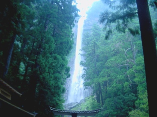 新宮市街地を一旦通り抜けて、熊野那智大社へと向かいます。翌日は新宮から熊野川を上って中辺路を踏破する予定にしていたこともあって、この日までに何とか、熊野那智大社への参拝を済ませておきたかったためです。夏の日は長いとはいえ、熊野那智大社手前で間近に眺められる那智の滝に辿り着いたときには既に時刻は午後4時30分になろうとしていました。次第に空は明るさを失って、木々に覆われた山間にはゆっくりと夕闇が迫ろうとしていました。大きな鳥居をくぐり、石段を降りていきますと、修験の山、那智山の深閑な杉木立のすぐ向こうに、巨大な水の柱たる那智の滝が豪快に飛沫をほとばしらせていました。 通常那智の大滝と呼んでいる滝はいわゆる「一ノ滝」です。那智山中には実に48もの滝がかかっていまして、それらを総称して「那智の滝」としているのだそうです。細かい水滴が頬を濡らす滝の前には、那智の大滝を説明する看板が立てられており、名勝かつ世界遺産である那智の滝そのものが、熊野那智大社別宮・飛瀧(ひろう)神社のご神体であることを伝えています。そのため、飛瀧神社は社殿はありません。滝を目の前に拝所が設けられているのみです。ただ、拝観時間を過ぎていたため、滝壺を間近にした拝所まで向かうことはかないませんでした。目前で圧倒的なスケール感をもって流れ下る滝の姿にしばし目を奪われていました。江戸から見ても、上方から見ても、伊勢よりもさらに地の果て、累々たる山々や谷間を越えてようやくたどり着ける熊野の大地。そうした途方もない道程を越えて目にした巨大な、本当に巨大な滝の猛々しいさまを前にして、抑えきれないほどの感動と抑揚、そして我々を生かしたらしめている自然への畏敬の念が沸き起こらないはずはないでしょう。熊野信仰のよりどころが自然そのものであり、熊野の山河とそのさらに彼方にかがやき広がる果てしない海原のどれしもが、人々をして神と信じたらしめる、すべてを超越した存在であったと感じて余りある、途方もない力。那智の大滝はその営みそのものであると実感せずにはいられませんでした。