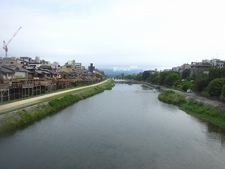 四条河原町を過ぎ、鴨川を渡って祇園へ、そして木々がみずみずしい緑色を呈する八坂神社境内へと進みました。祇園祭は八坂神社の祭礼です。869(貞観11)年に、都に疫病が流行したとき、その退散を願って始められた「祇園御霊会」が起源であるとされているのだそうです。八坂神社から円山公園へと向かいますと、枝いっぱいに緑の葉を繁らせたしだれ桜の向こうには、梅雨空にしっとりとした色彩を呈する、滴る東山の山並みが、たおやかに広がっていました。 |