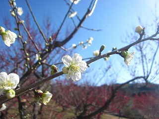 栽培される梅はまだ春浅い時期であったこともあり、開花は日当たりのよい局所的な場所にとどまっていましたが、空は雲一つ無い、どこまでも清涼な空色に依然として彩られていまして、大地の早春の景色と豊かに呼応していました。散策路は谷筋に寄り添うような集落へと下りて、梅のふくよかな風合いそのままの、長閑な家並みが連続していました。南部梅林での散策を終えた後は、田辺市街地を経由する大阪行きのバスまでの時間を利用し、白浜の白良浜を訪ねました。その名のとおり白い砂浜に打ち寄せるマリンブルーの小波は春のしなやかなかがやきをその波頭にいっぱいに溶け込ませていまして、爽やかな潮騒が耳に心地よく響いていました。 |