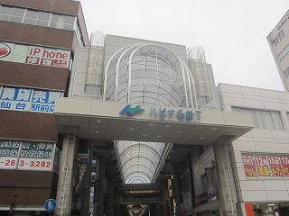 中央通りは、この町が仙台藩の城下町として建設された当初から、町割りの際の東西方向の基軸として計画された通りでした。仙台城の大手門から東へ、一直線に町を横断し、石巻方面への街道筋へと連接していました。城下町中心部には御譜代町と呼ばれる、古くから伊達家に付随してきた由緒ある承認を中心とした町が割り当てられ、要衝には武士の町が設置されて防衛にあたりました。名掛丁は町の名が示すとおり(仙台城下町の場合、「丁」は武士の町、「町」は町人の町であることはこれまでも触れてまいりました)、御名掛衆と呼ばれた武士団が配置された町でした。東五番丁(愛宕上杉通)の大通りを横断し、50メートルほど進みますと、クリスロード商店街へと移り変わります。クリスロード商店街は、かつての新伝馬町(「しんてんまち」と読みます)にあたります。現在ではハピナ名掛丁とクリスロードの間は一体的な町並みとなっていますが、武士の町と町人町との間には、四ッ谷用水の分水が流れて、2つの町を厳然と画していました。その用水路跡はタイルによって表現されています。住居表示は大通りによってブロック単位に再編される一方、商店街の単位は旧来からの町割りに沿っているのも、歴史ある城下町としての矜持を感じさせます。 中央通りは完全な歩行者用道路となっていまして、日々多くの人々が闊歩する活気のある繁華街となっています。8月6日から8日まで行われる仙台七夕のメイン会場のひとつともなります。商店街の中程には、三瀧山不動院があって、地域の崇敬を集めています。近年は全国的なチェーン店の進出が目立つ巷となっているように感じられますが、クリスマス一色の装飾の中にあって、サンタクロースの衣装でトナカイが引くそりに乗る福の神・仙台四郎のユーモラスな姿を見ますと、古き良き仙台の伝統の温かみを実感します。片側四車線の大通りである東二番丁を渡りきりますと、仙台城下町随一の豪商が軒を連ねた大町(マーブルロードおおまち)へと続いていきます。通りの南側、青葉通に北面して超高層ビル(仙台ファーストタワー)が屹立し、その表情が一変しました。仙台における老舗百貨店・藤崎と、南北に交差する一番町の商店街へと続く一帯は、近年海外高級ブランドのテナントも増えている印象です。一番町を過ぎますと、アーケードはなくなって町並みはやや穏やかになり、日銀仙台支店の先、国分町通りとの交差点が、「芭蕉の辻」で、仙台城下町の中心として機能してきた場所でした。