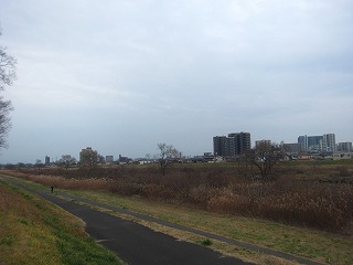 沖野地区から飯田地区(上飯田、下飯田)へと進む県道沿いには、建物の間に小さな水路が流れる様子も確認できまして、自然堤防の微高地を指向した集落と、その後背地に展開した田園地帯を背景とした農業的な土地利用が、この地域における原風景であったことが理解されます。六郷という地名は、その名が連想させるように、この地域に存在した6つの集落(沖野、飯田、日辺、今泉、二木、種次)を基礎としていると考えられます(実際はこの6村に加え、浜集落で会った井戸浜、藤塚浜の8集落が合併しています)。これらの集落は広瀬川に沿って発達した自然堤防に存立するという等質性が、これらの村々が連立するにあたってオリジナルな地名ではなく、「6つの村」という村名を選択せしめた素地にあったことは十分に理解できるような気がいたします。 沖野地区や飯田地区は、仙台市街地の郊外化の影響を大きく受けていまして、集落のエリアの全般的に宅地化が進行している様子を見て取ることができます。六郷小学校や中学校のあるあたりまで来ますと、周囲は新しい住宅地が展開していまして、その背後にある昔からの集落と重なりながら、市街化が進んできた地域の歩みを確認することができます。六郷小学校北の道を東へ入りますと、広大な水田地帯が広がる様子を見通すことができます。農業地域であることを伝える用水路(霞目雨水幹線排水路)を渡りますと、飯田地区北側の小さな集落へとつながります。この辺りまで来ますと、時間も午後4時近くとなり中心市街地へと戻らなければならなくなったため、「築道バス停」でバスを待ちました。「築道」というその名前に、荒地を開墾し田園地帯へと変えてきた、地域の変遷史を見たような気がいたしました。