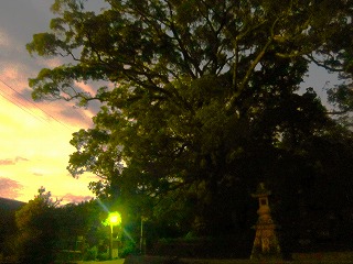 #565 蒲生のクス、夕方の風景(鹿児島県姶良市) (2024年9月25日執筆) 2014年9月6日、鹿児島県姶良市蒲生(かもう)にある、蒲生のクスに出会いました。高さ約30メートル、樹齢約1500年という巨樹で、かつて行われた国の調査では日本最大の巨木と認定されています。蒲生八幡神社の境内に構える大樟はとても雄大で、暮れゆく夕日を穏やかに受けて、のびやかな佇まいを見せていました。