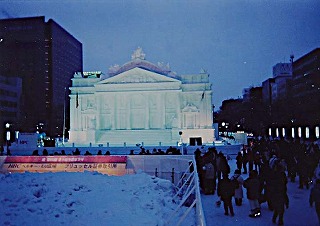 #1061 さっぽろ雪まつり、氷像の見える風景(札幌市中央区) (2026年2月3日執筆) 2002年2月9日、さっぽろ雪まつりを訪れた祭の写真です。札幌市の2月を彩る一大イベントとして知られる雪まつりですが、暦の上での季節では早春にあたる時季に開催されています。とはいえ、北国の2月は本土からすれば厳冬の只中と言ってよい季節でして、大通公園に立ち並ぶ氷像の精緻さに圧倒される冬の風景です。